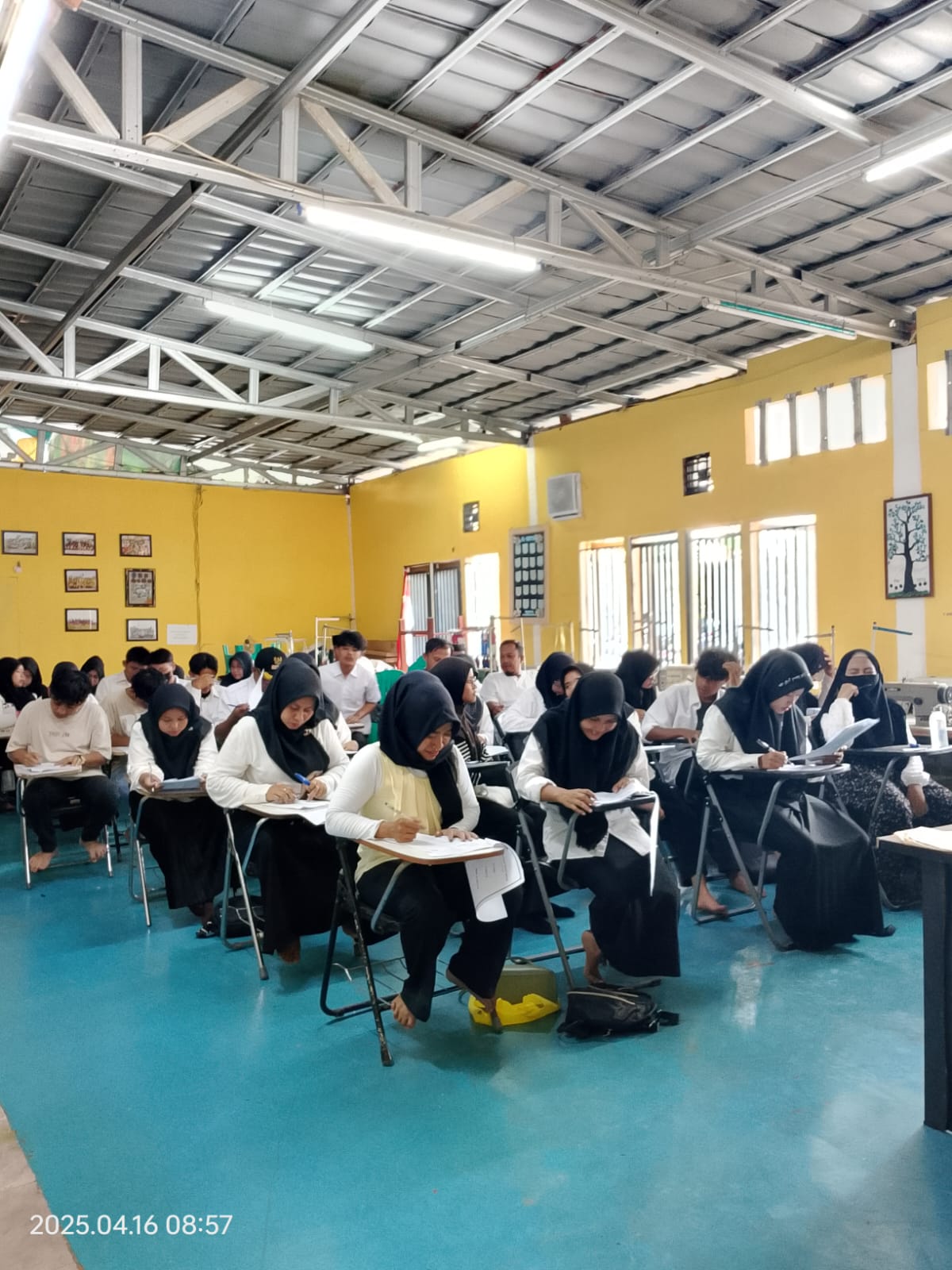 Di dalam ruang ujian, suasananya begitu khidmat. Peserta didik duduk rapi, kertas soal di tangan, pena yang menari di atas lembar jawaban. Beberapa tampak berpikir keras, menatap soal dengan kening berkerut sebelum menulis jawabannya dengan penuh keyakinan. Ada pula yang menulis dengan cepat, seolah setiap jawaban sudah tertanam kuat dalam ingatannya. Semuanya terlihat berusaha sebaik mungkin, mengerahkan seluruh kemampuan yang telah diasah selama berbulan-bulan.